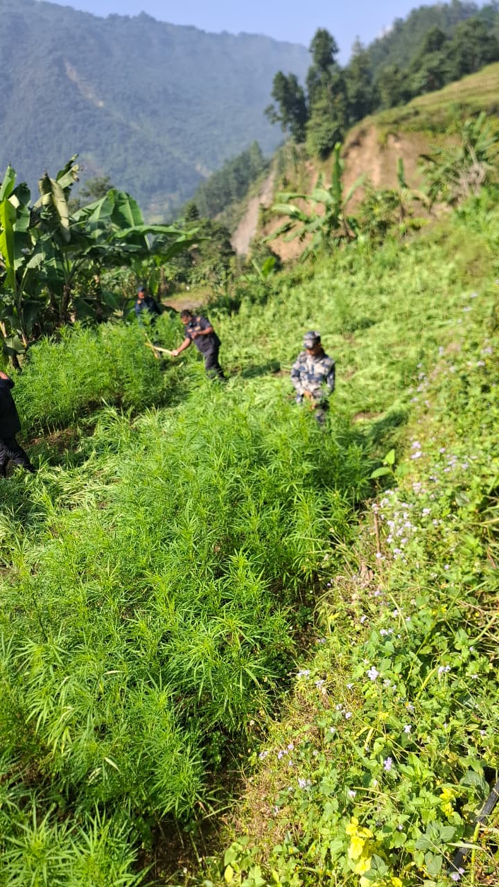 मकवानपुर — गत कार्तिक १७ गतेदेखि २० गतेसम्म जिल्लाभर सञ्चालन गरिएको संयुक्त अभियानअन्तर्गत अबैध रूपमा खेती गरिएका गाँजाका बोट/बेर्ना फडानी गरी नष्ट गरिएको छ।