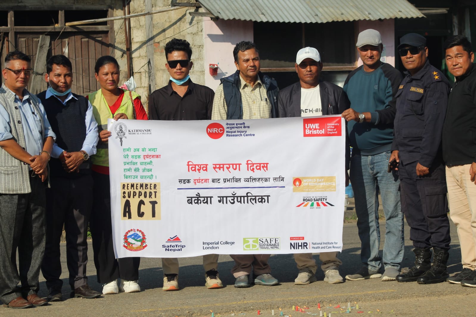 आज 2025 नोभेम्बर 16 मा सामाजिक सडक सुरक्षा मञ्च बकैया द्वारा आयोजित कार्यक्रममा सडक दुर्घटनामा परी ज्यान गुमाएका तथा प्रभावित व्यक्तिहरूको सम्झनामा दीप प्रज्वलन गरिएको थियो।