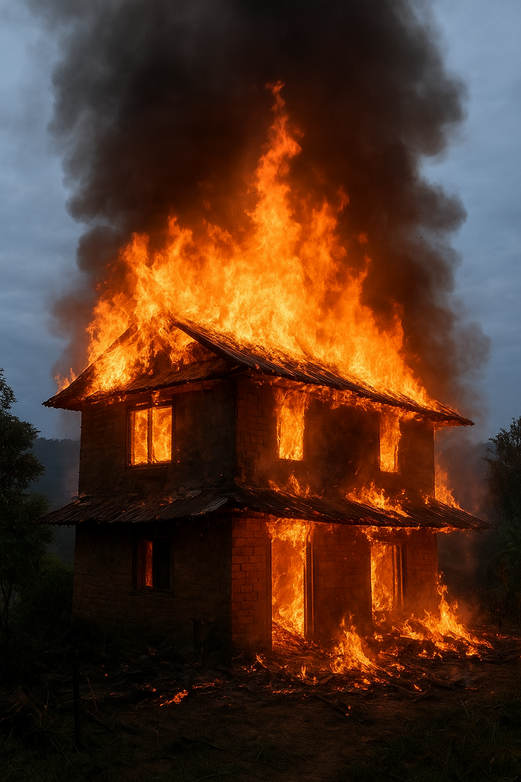 मकवानपुरको राक्सिराङ–७ मा आगलागी, दुई तले घर जलेर नष्ट