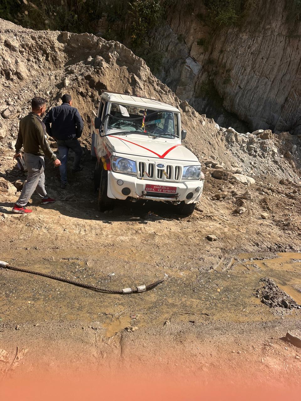 प्रहरीका अनुसार नदीमा जमेको फिज (बरफ जस्तै आधार) र ढुङ्गामा पछिल्लो चक्का अड्किएर गाडी चिप्लँदा बोलेरो नदीमा पल्टिएर पानीमा डुबेको थियो। घटनाबारे मंगलबार दिउँसो करीब १२ बजेतिर जानकारी आएपछि प्रहरी टोलीले घटनास्थलमा पुगेर अनुसन्धान तथा उद्धार गरेको थियो।