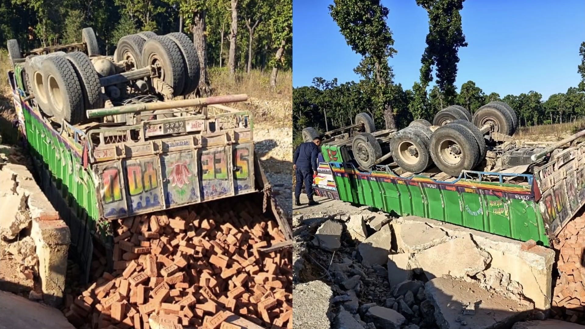 मिति २०८२।०८।१३ गते बिहान ८:५५ बजेको समयमा पदमपोखरीबाट टुटेपानीतर्फ जाँदै गरेको लु २ ख ६४९९ नम्बरको इट्टा लोड १२ चक्के ट्रक सडकमा राखिएको स्ल्याब कमजोर भएकै कारण भाँचिँदा अनियन्त्रित भई सडक छेउमा पल्टिएको थियो।