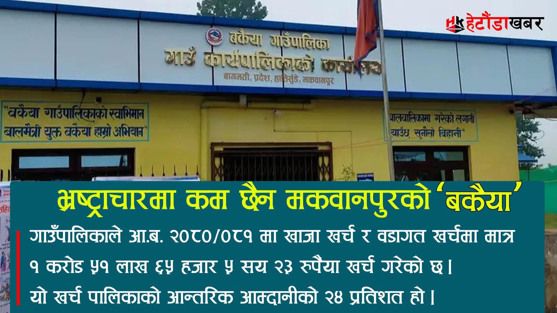 मकवानपुर,बकैया – बकैया गाउँपालिकाले सामाजिक संजालमा फैलाइएको “आर्थिक वर्ष २०८०/०८१ मा खाजा खर्च र वडागत खर्चमा मात्रै १ करोड ५१ लाख ६५ हजार ५ सय २३ रुपैयाँ खर्च भयो” भन्ने दाबी पूर्ण रूपमा तथ्यहीन रहेको जनाएको छ।