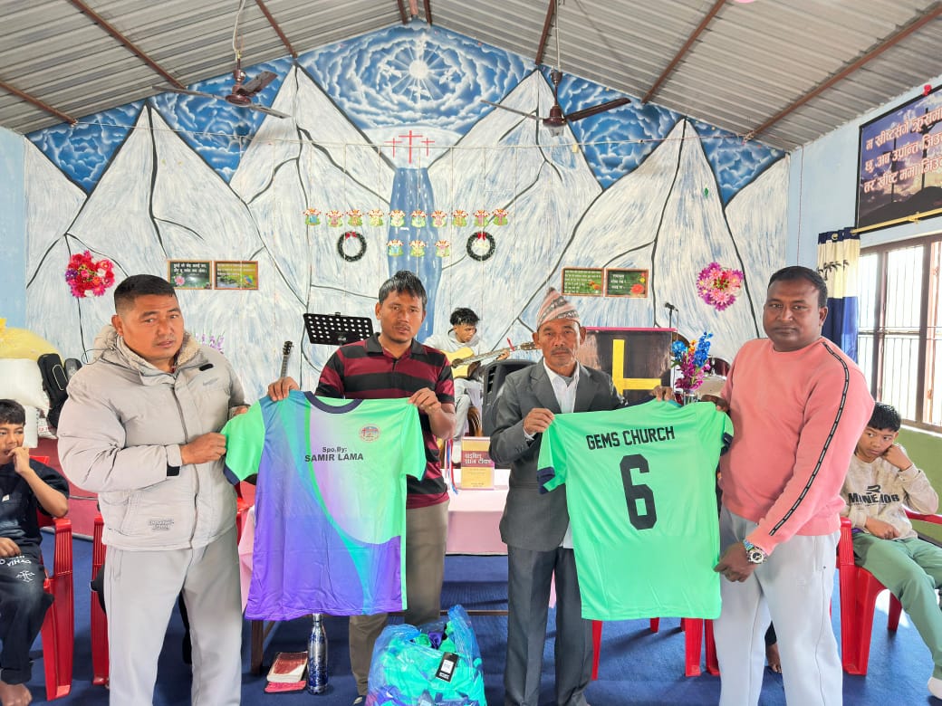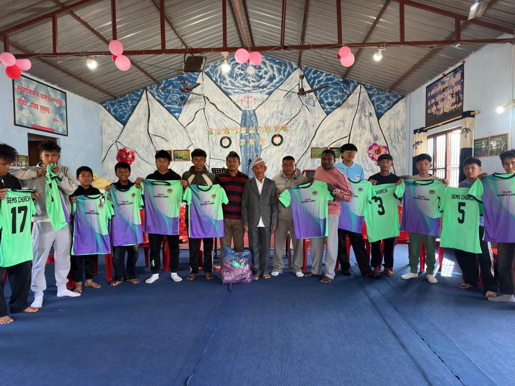 जेम्स चर्च कर्मचुली फुटबल टिमलाई समाजसेवी समीर लामा थिङको सहयोगमा १६ थान जर्सी हस्तान्तरण
