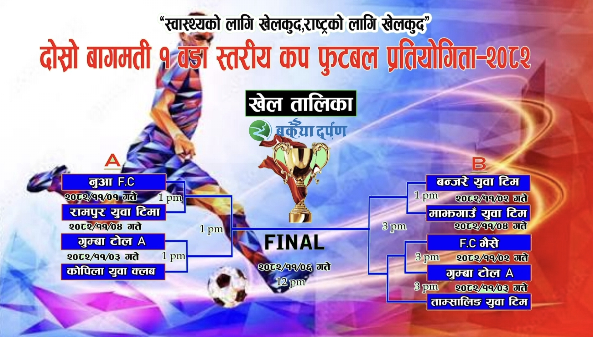 दोस्रो बागमती–१ वडा स्तरीय कप फुटबल प्रतियोगिताको खेल तालिका सार्वजनिक